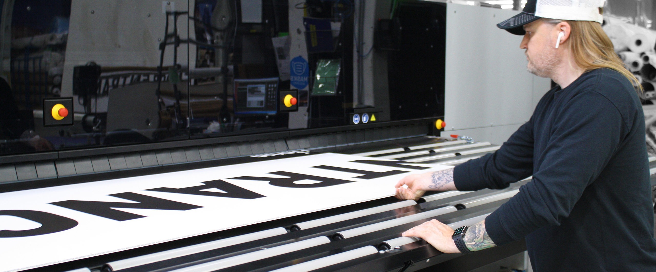 Our advanced techniques enhance every project. We use white ink for opacity and color vibrancy, second-surface printing for double-sided graphics, and five-layer printing for multiple images on a single sheet. Selective backlit and push/pull decals are completed in a single pass, eliminating registration issues and ensuring perfect alignment. Whether producing rigid panels, mesh banners, or specialty applications, our UV-hybrid process delivers precise, durable, and professional results every time.