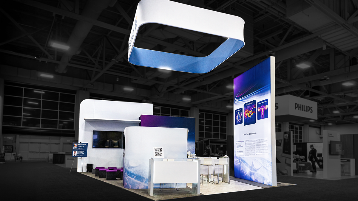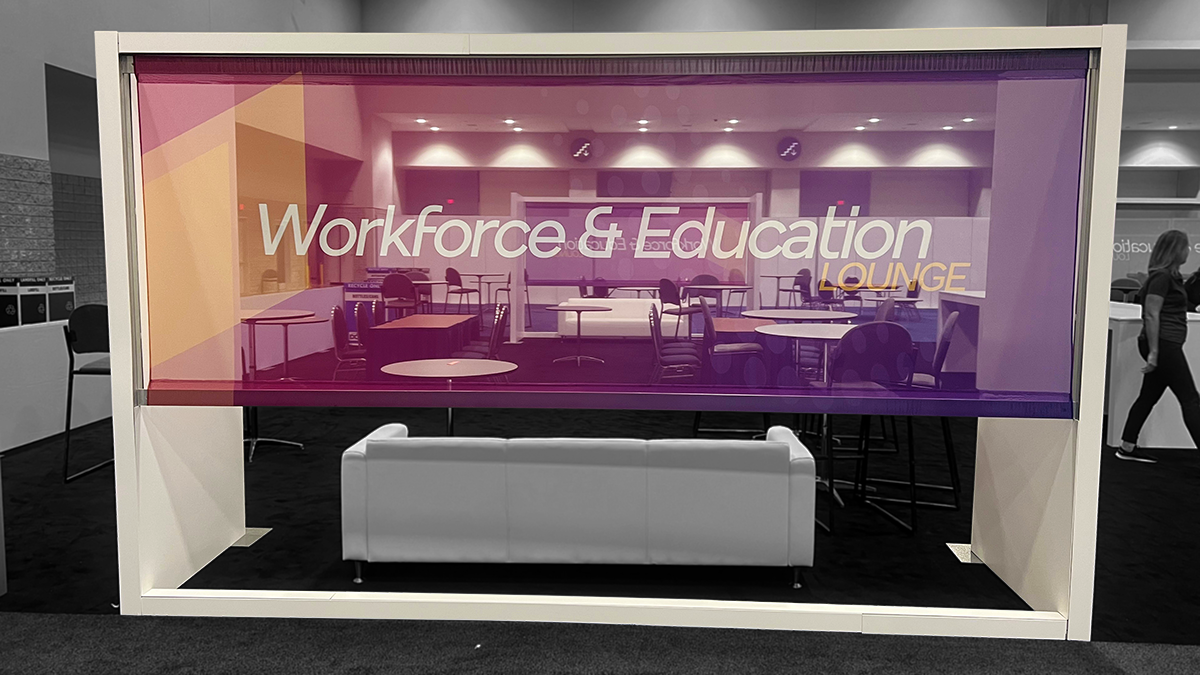 Dye sublimation printing at Olympus uses water based inks that transform into gas at high heat, bonding permanently with polyester fibers for rich, continuous tone color. Originally developed for textiles, this process has become the gold standard for fabric graphics in trade shows, retail environments, and experiential displays. We print on polyester based fabrics up to 196 inches wide, creating SEG graphics, curtains, soft signage, and more, all finished with silicone edging, keder, or custom sewing to fit perfectly into your frame system of choice.